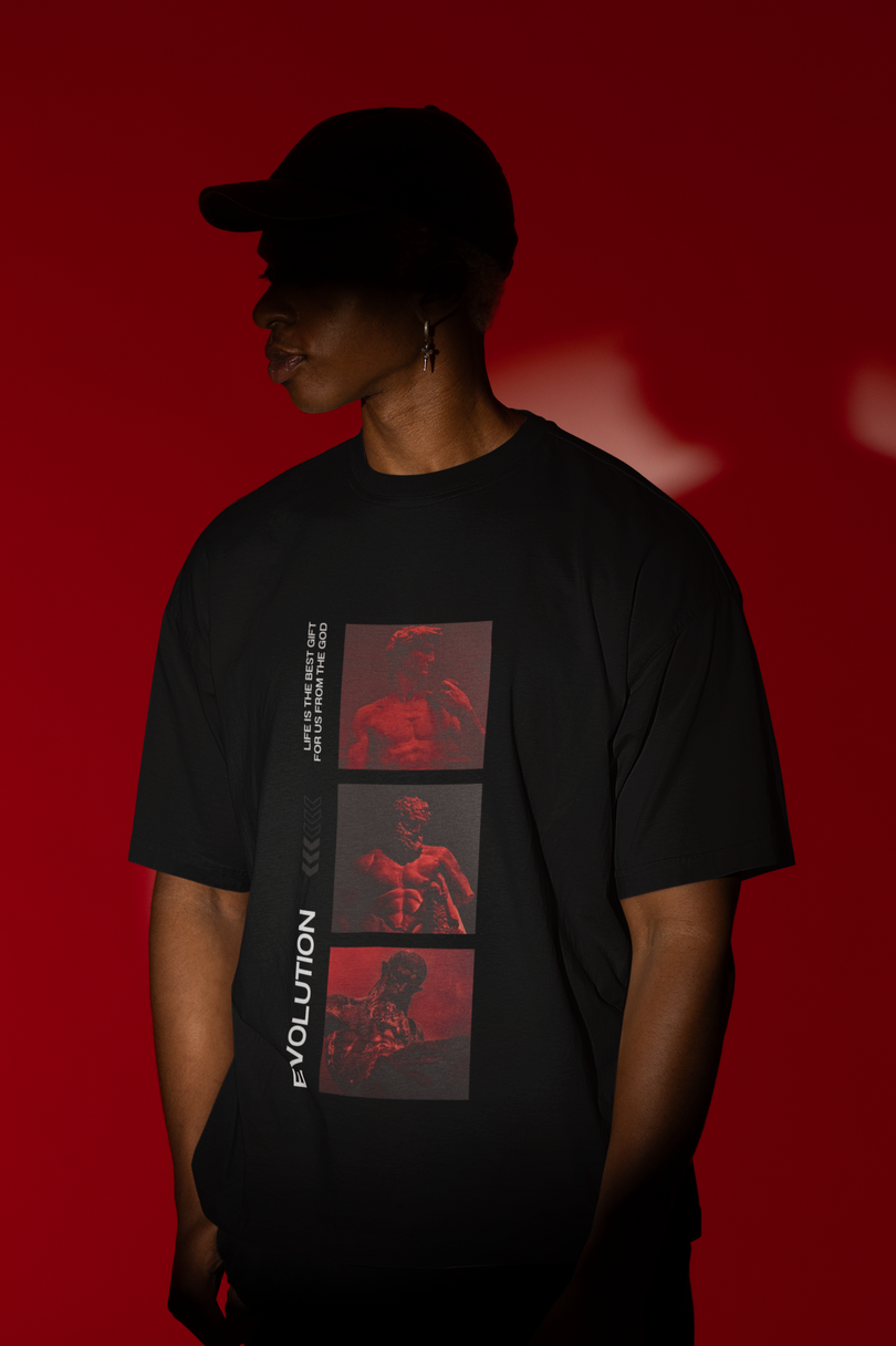 Oversized tee featuring a Greek-style red character with the phrase “Life is the best gift for us from God” in black text. Made from pre-shrunk 100% cotton (180 GSM), it has a relaxed fit, soft texture, and breathable comfort. Perfect for casual streetwear with a bold, artistic, and motivational vibe.